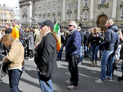 The Irish flag was lowered to half mast during the event and President Michael D Higgins laid a wreath to honour all those who died. After a minute's silence was observed, the flag was raised to full mast and the national anthem was played while the Air Corps conducted a fly past. Dignitaries at the event included former presidents Mary McAleese and Mary Robinson, former taoisigh Bertie Ahern and Brian Cowen, Dublin Lord Mayor Críona Ní Dhálaigh as well as Northern Ireland Deputy First Minister Martin McGuinness, Garda chief Nóirín O'Sullivan and the British ambassador to Ireland Dominick Chilcott.