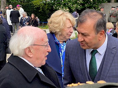 In honour of the invitation from the Irish Minister of Defence Mr. Simon Coveney, T.D. The Imam of the Islamic Cultural Centre of Ireland, Sheikh Hussein Halawa participated in the annual 1916 Easter Rising commemoration ceremony on Wednesday May 4th. The ceremony took place at Arbour Hill, and was marked by the President and Sabina Higgins. President Higgins laid a wreath in remembrance. Click on the following link to read more.
