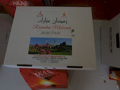 In keeping with the spirit of Ramadan and following the advice of the Prophet Muhammad (may Allah's peace and blessings be upon him) the Islamic Cultural Centre of Ireland put together boxes of food staples for distribution to members of the community to assist them during the month of Ramadan.