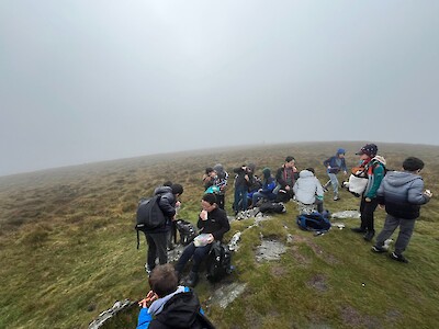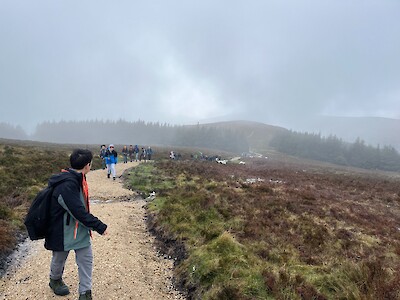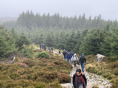 Reaching the summit, we found ourselves touching the clouds—an exhilarating experience. As the clouds lifted, we were treated to a stunning panorama of the mountains and Dublin Bay.