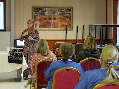 The community welfare department of the ICCI arranged a training session for the HSE staff, who are currently running the COVID testing centre here in the events hall of the ICCI, on Tuesday May 17th from 10am - 11:30am. Sr Amilah gave a brief introduction to the basic beliefs that all Muslim's adhere to, which are the five pillars of Islam and the six pillars of faith (Iman). A small tour of the main prayer hall was given before returning for the second half of the session with Sr Summayah. She spoke about Islam and Muslims, the different cultures and ettiquettes and also touched on the misconceptions that people may have in relation to some areas of the religion. Questions were answered at the end of the session. All in all it was a lovely morning, and we'd like to thank the HSE staff for attending and being so engaging.