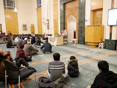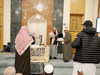 The lecture was both informative and interactive, as Dr. Alshubaily posed questions to the attendees and offered them gifts in the form of dates from Madinah.