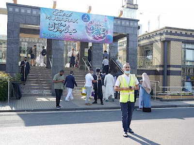 Alhamdulillah we celebrated Eid Al Adha together on Tuesday July 20th. There were three prayers held in the ICCI, and it was really lovely to welcome the community on what proved to be a wonderful summers day. Human appeal were on site collecting for charity and the olive tree restaurant provided an open air BBQ.