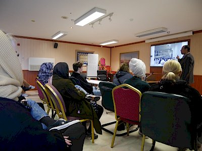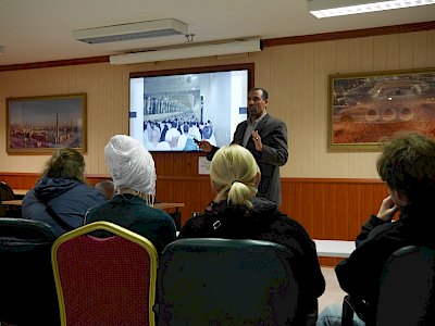 The Islamic Cultural Centre of Ireland was visited by a lovely group of tourists from Denmark on Wednesday, March 11th. They were given a tour of the mosque and a presentation about Islam by Dr Ali Selim in our seminar room. They were a very engaging group who took the opportunity to ask many questions. The most common ones asked were about the position of women in Islam and also the history behind Sunni and Shia Muslims and the ongoing conflict between them in certain parts of the world.