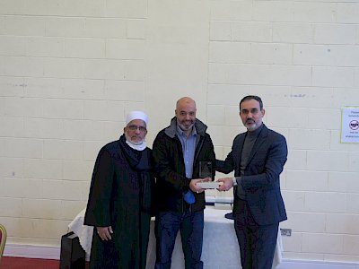 The management and staff of the Islamic Cultural Centre of Ireland held a small farewell gathering on Friday 19th of November to bid farewell to their former colleagues: Mostafa Nidar (Office administrator), Jamal Durani (Security), Said Houari (Cleaning operative), Ibrahim Khalfi (Cleaning operative), Fatima Lounis (Cleaning operative) and Tasneem Abed (Office administrator) who unfortunately was unable to attend in person. Sheikh Mustafa opened the gathering with a recitation of Qur'an and our CEO Ahmed Hasain said a few words of appreciation for their work over the years. Sheikh Hussein also spoke and thanked them for their contributions to the Centre. A small keepsake and token of appreciation was presented to each of them. We wish them all the blessings and success in their future.