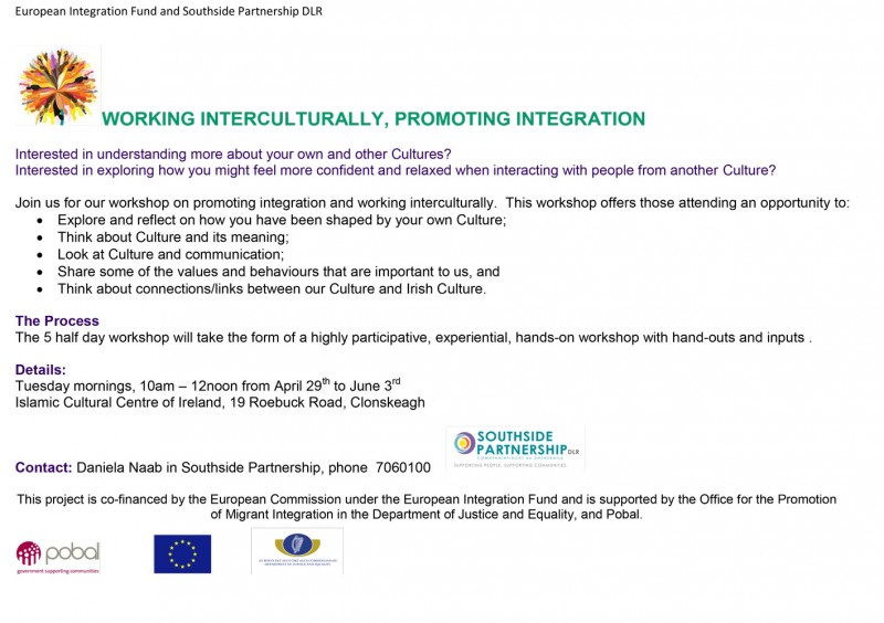 The Islamic Cultural Centre of Ireland together with the European Integration Forum and Southside Partnership DLR, is delighted to announce commencement of a new course entitled “Working Interculturally, Promoting Integration” for women.