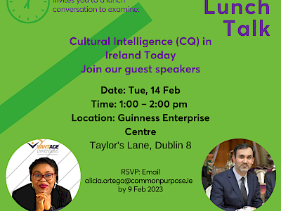 On Tuesday 14 February, our CEO, Ahmed Hasain was a guest speaker along with Toluwani Akaehomen, Chairperson, Africa Centre Ireland at “Leadership Lunch Talk” where they talked about the role and importance of the Cultural Intelligence (CQ) in today’s Ireland which is becoming increasingly multicultural. The event had been organized by Common Purpose Ireland for their Alumni.