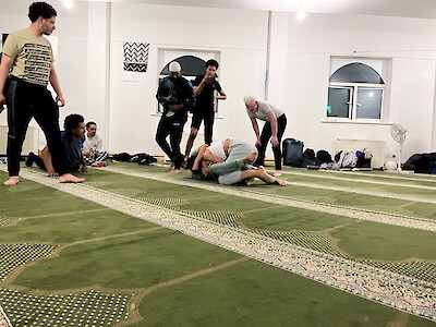 For the night we discovered nice charming Mosque, the Islamic Cultural centre of Killarney. The hosts Mr Iqbal, Imam Muhammed Sayed and their team were very glad to receive us and were very caring for our overnight stay in the Mosque. We were invited for a tasty shawarma dinner and a nice place for stay over. The imam enlightened our night with a humble reminder… After salah Isha, we had our own UFC Wrestling World Championship and at the final the Undefeated, Undisputed champ Wael defended his title.