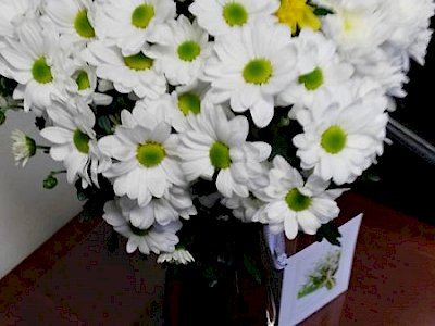 With all that is happening at the moment in the world, and all the bad news that we are being bombarded with, it was a breath of fresh air to be met by this beautiful gesture this morning. A lady with a heart of gold, dropped flowers and a card into us. The card reads: