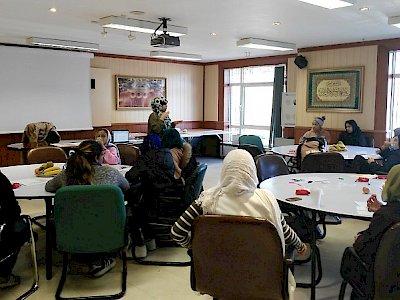 On Saturday March 25th, the community welfare department of the ICCI had the pleasure of welcoming a group of girls and two of their youth leaders from the Northern Ireland Muslim Family Association (NIMFA) which is based in Belfast. Two workshops were carried out with them. Sister Amilah taking them for the first workshop, getting them to work on their own action plans for what they can do to help increase their Iman and improve their connection with their Creator. The second workshop involved Sister Fatima talking to them about confidence building, getting them to reflect on themselves positively and acknowledge their own self-worth. Each girl then gave a little presentation to the group on a topic of her choice. They had a break between these two workshops, which involved half an hour play in the youth club, followed by Duhr prayer and lunch in the restaurant. It was an enjoyable visit, and a pleasure for our department to meet the next generation of young Muslim women from Belfast.