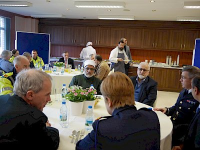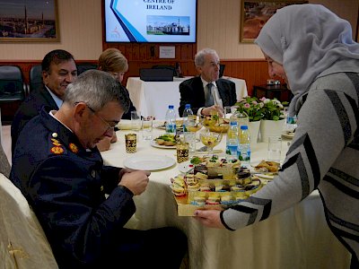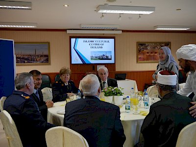 Following the presentation a light lunch was enjoyed by all in an atmosphere of engaging conversation and positive interaction. The CEO of the ICCI and Imam Hussein Halawa then presented a gift to Garda Commissioner to mark the occasion of his visit.