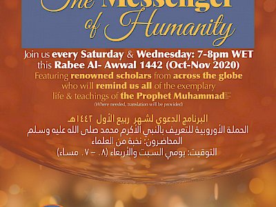 You are invited to join us to learn about "Muhammad the Messenger of Humanity" every Saturday & Wednesday 7pm - 8pm.
