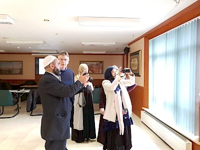 The administration of the Islamic Cultural Centre of Ireland organised a short photography training session for some of the ICCI staff members on Wednesday, 11th of March. Pauric McGroder facilitated the session taking the attendees on a short journey through the history of photography before getting into the real business detailing the workings of the camera and how to identify the different settings on the cameras attendees brought with them. They learnt about the exposure triangle which is made up of ISO, shutter speed and the aperture. How to adjust these settings manually in order to get that good shot. They learnt about camera shake and when is the best time to use a tripod or put the camera on a firm surface. There is also the correct way to actually hold the camera in your hand for better results!