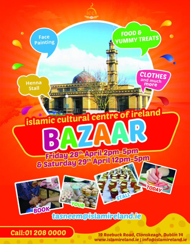 The Islamic Cultural Centre of Ireland is delighted to present the Pre-Ramadan Bazaar 2017 on Friday 28th and Saturday 29th April 2017. From inspiring books to handcrafted decor, Islamic clothes and there will be something for everyone at this year’s Bazaar.