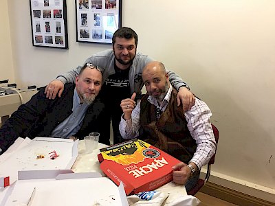 The evening and the interesting talks finished with tasty pizza and great mood.