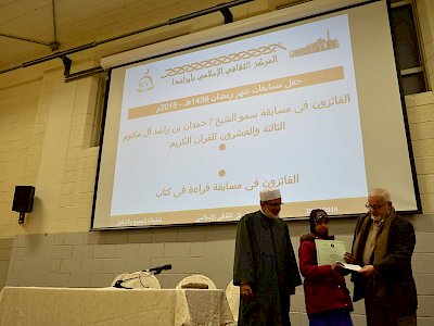 On Saturday December 29th, the Dawah department of the Islamic Cultural Centre of Ireland convened the prize-giving ceremony at 3pm in the ICCI Multipurpose Hall. Families gathered to celebrate and witness their children receiving their much deserved awards by the CEO Dr Nooh Alkaddoo and the Imam Hussein Halawa.