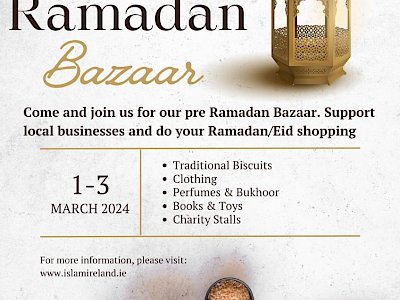 The ICCI will host a Ramadan/Eid Bazaar on the 1st, 2nd and 3rd of March.