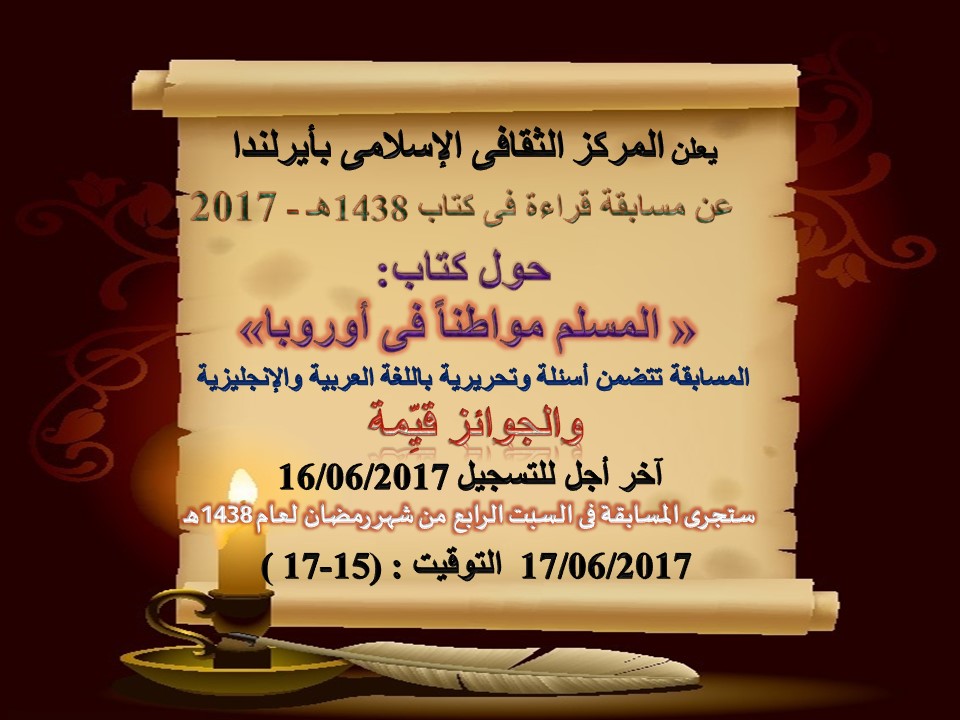 Islamic Cultural Centre of Ireland has pleasure to announce the first Ramadan Book Review Competition 1438/2017. The book is The Muslim as an European Citizen. The competition will run on 17th June, 15:00-17:00 hours.