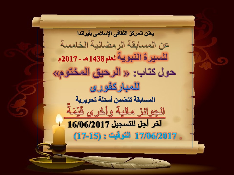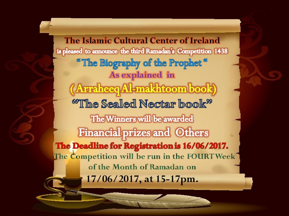 The fourthRamadan’s Competition will be on 17th June from 15:00 - 17:00. It is the Biography of the Prophet as explained in Al Raheeq AlMakhtoom, The Sealed Nectar.