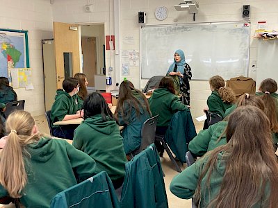 Sr Amilah from our community welfare department was invited to Our Lady's in Terrenure to give a talk to five classes of second years about Islam. There were three talks in total over two days. The students were engaging and the staff very welcoming. Special thanks to Edel for making the arrangements.
