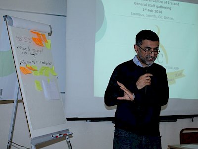 On February 1st a general staff meeting for all the staff of the Islamic Cultural Centre of Ireland was held at the Emmaus retreat Centre in Swords. Dr Nooh’s opening presentation brought the staff through the history of the establishment and its progression from 1996 up to date. Brother Adnan Saif from the UK-based Knowledge Transfer was a guest at the meeting and led the staff in a strategic planning workshop. This was of immense benefit as it made everyone think, as well as look, at the service that we provide as a team and how we can improve on it in the coming years. The various departments gave insightful presentations into their work, and their plans to continue to make improvements for the benefit of the growing Muslim community in the future. The importance of community, their needs and challenges and catering for the Youth was touched on by all departments.
