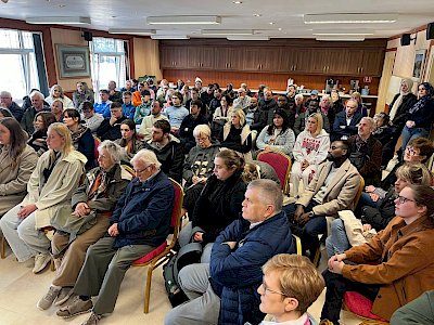 On Friday 22nd of March a group of students from Trinity College and other universities visited the Islamic centre. They attended a Khutbah delivered by Sheikh Halawa. This was followed with a question and answer session with Dr Ali Selim. A wide range of questions were raised and answered. For instance, one question was about the role of the mosque in Islam. Another question was about the rules of interfaith dialogue from a Muslim perspective. All these questions and others were answered in a friendly and honest way. In the conclusion Prof. Jude expressed his appreciation for Dr Ali Selim’s presentation and the cooperation expressed by the ICCI.
