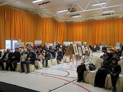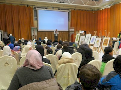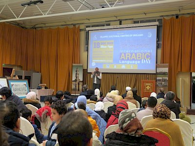 The International Arabic Language Day festival was held Sunday 18th of December at 1pm in the events hall of the Islamic Cultural Centre of Ireland. Sheikh Younes Saleh, Director of the Quranic School on behalf of the management of the ICCI, opened the event and a talk about my language, my identity, was delivered by Dr. Jasser Audah. The event included an exhibition of beautiful artwork displays by the students of the various Islamic schools: