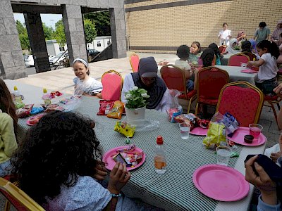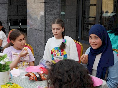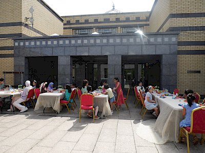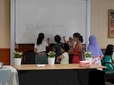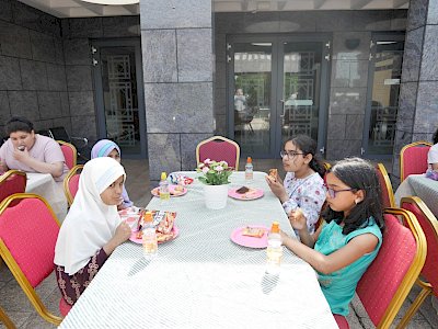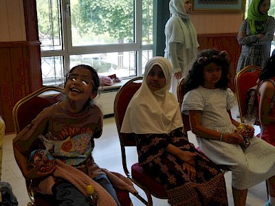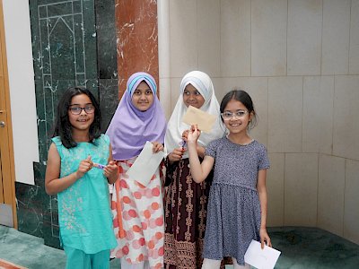 The ICCI girls youth club organised an Eid treasure hunt and pizza/party for the younger girls on Saturday 16th of July. The girls split into three teams: strawberries/blueberries/peaches and had to find clues hidden around the Mosque and grounds. Many thanks to Sr Leila our female security and Br Murad from the shop for being the answer to clues on the day!