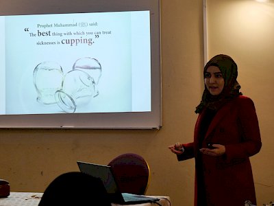 The morning began with a workshop by Dr Elif Torun on the traditional Sunnah practice of Hijama. It was an intriguing workshop that explained and elaborated on this Sunnah practice, indeed the information given was of excellent standard, following this hijama was offered to some community members by Dr Elif who is qualified and registered with the Irish Medical Council.
