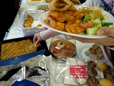 The women brought delicious dishes of food and cakes to share, and the community welfare office organised some additional finger foods from the Olive Tree Restaurant.