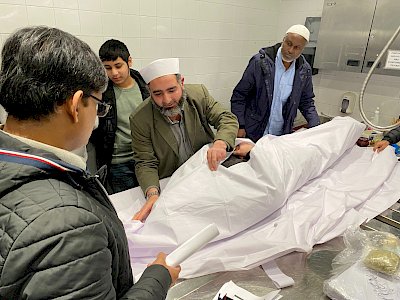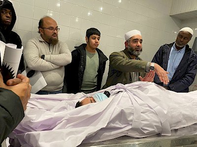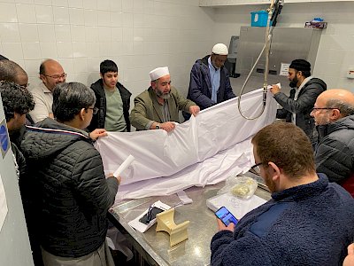 This was followed by an engaging practical demonstration in the mortuary by Sheikh Eid Zaher. He gave the demonstration in English and each participant was given a booklet detailing the washing and shrouding course. This illustrated the steps of washing and shrouding. You can view the slides here.
