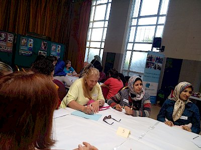 The community welfare department of the ICCI had the pleasure of hosting the Southside Partnership's Women4women multi cultural women's breakfast here at the Centre on Wednesday 19th of June. It was the last one of the school year. Women of many different nationalities and faiths attended and participated in the start of a cityscape art project. They sat in groups and spoke about what they thought would make an ideal global city, and then proceded to do a model of it. This was then followed by sharing some delicious food over a cup of tea/coffee which is always the best ending to such events.