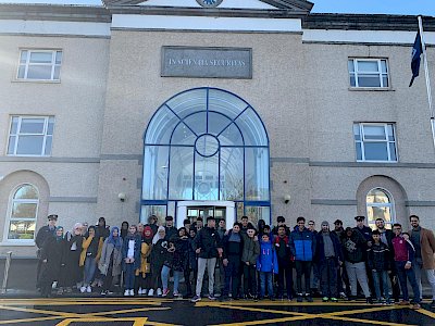 The ICCI youth club organised a youth trip with our community Gardaí, Garda Deidre Gately and Garda Darragh O’Brien, to the Garda College in Templemore on Thursday, February 20th. We stopped off in Portlaoise mosque on the way to pick up their youth leader Sr Sarah and her youth group. On arriving to Templemore our visit commenced with a very informative talk by Sergeant John Reynolds. He shared with us the history of policing in the Irish state and when An Garda Síochána which means ‘Guardians of the Peace’ were established. He also detailed the criteria for joining the Garda course and the studies and training that the students undertake. The floor was opened up to questions, which the youth took full advantage of.