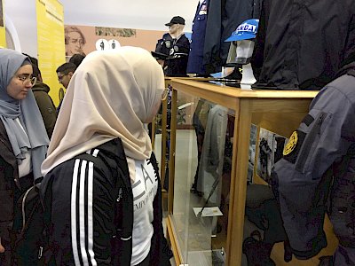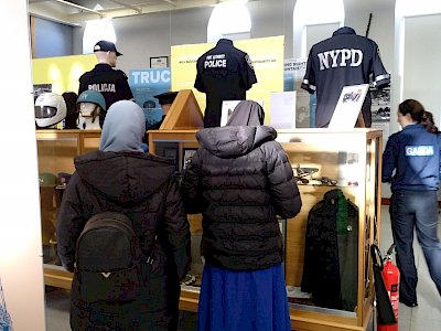 We then went to view the Garda museum, showing the history of the Gardaí, old uniforms as well as uniforms of the different law enforcements from around the world. The youths and their leaders also got to try on some of the coats and hats for photos.