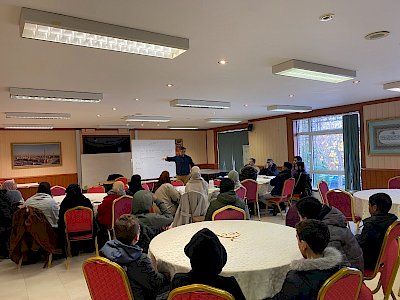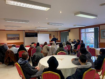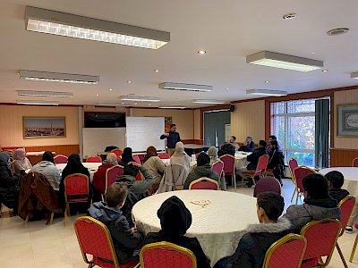 After a bit of a flight diversion due to the weather, the ICCI was delighted to welcome Br Mostahfiz Gani back to Dublin on the 10th of December whereby he presented workshops to some of the youth leaders and youth on Saturday morning, as well as giving a public talk in the main masjid after Duhr prayer.