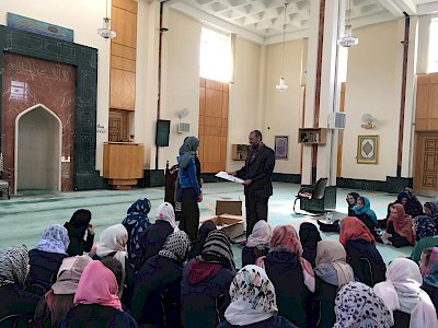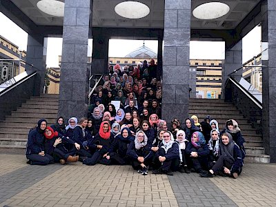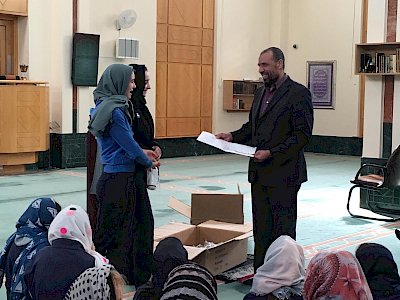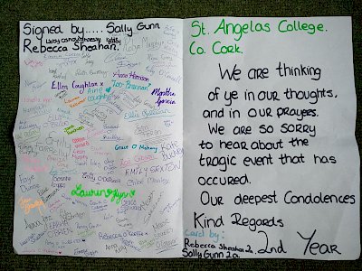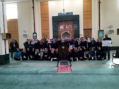 The Islamic Cultural Centre has many school visits throughout the year, each class special in it's own way. This particular second year class from St Angela's College, Co. Cork, made their visit with us even more special. The girls, along with their teachers, all chose to wear beautiful colourful hijaabs for their visit and presented a hand made card of condolence signed by them all to their tour guide Dr Ali Selim.
