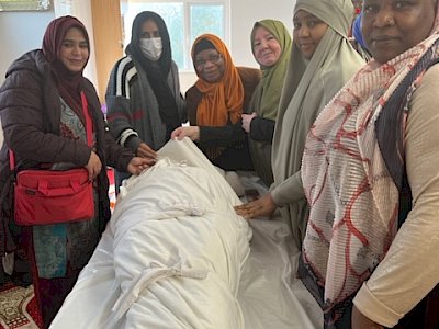 The ICCI arranged a washing and shrouding workshop in Waterford Islamic Centre for the sisters living down there. Sr Summayah liaised with Sr Murofat who organised the gathering of the group of sisters who are interested in forming the washing and shrouding team for their area of the country. On Wednesday February 1st Sr Summayah and Sr Amilah travelled to Waterford to deliver the course. The Waterford community have been successful in gaining permission to use the newly built mortuary of Waterford University Hospital for preparing deceased members of their community for their funeral. They also have a section of the graveyard there reserved for the Muslim burials. Alhamdulillah.