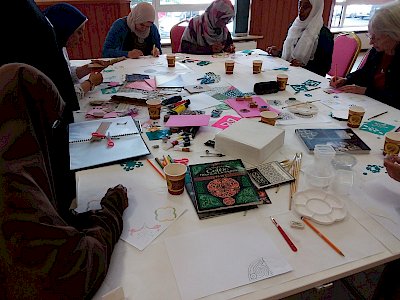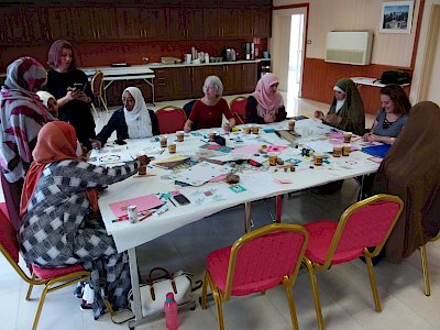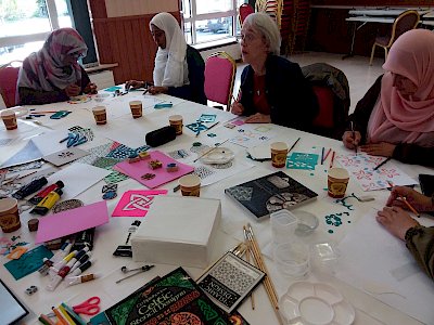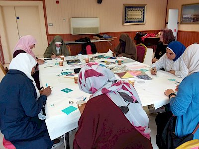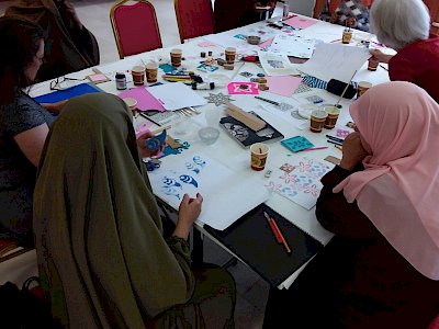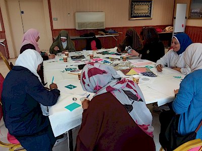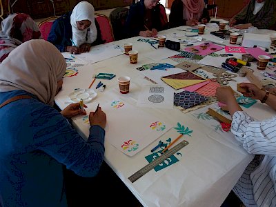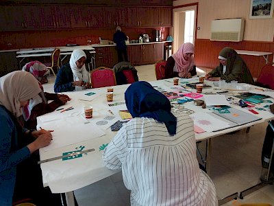 Last Thursday, September 12th the WEMIN art project kicked off here at the Islamic Cultural Centre of Ireland in the seminar room. The women learnt how to make their own Pattern Blocks, Textile Printing and Painting. The WEMIN art project welcomes women of all nationalities and ages to drop-in at any class or venue. The artwork will be displayed at an exhibition at their Multicultural Women’s Breakfast during Social Inclusion Week on the 9th of October, 2019.