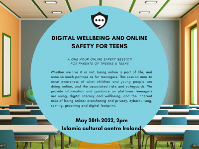 28th May - 2pm - 3pm - Parents Workshop - DIGITAL WELLBEING AND ONLINE SAFETY FOR TEENS
