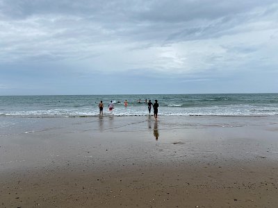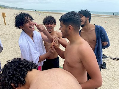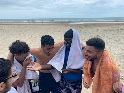 to the beach was full with fun and excitement. All the boys were anticipating the swim in the sea,