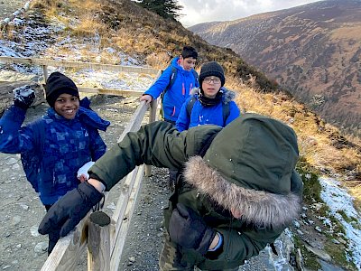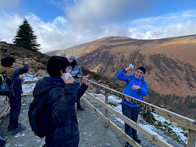 The boys took a hike to Glendalough in the Wicklow mountains on Thursday 24th of February, during the Midterm Break. The title of our hike was: “Discovering Allah’s Beautiful Creation”. They really discovered the beauty in the river, the waterfalls, the forest and the valley. It amazed us all with its natural beauty and history. SubhanAllah. We were pleasantly surprised to find snow at the top of the mountain and the boys engaged in a spontaneous snowball fight, which brought lots of funny moments and laughs. We enjoyed the walk, the sceneries, clean air and clear sky, wild animals, historic sites and snacks breaks on this beautiful winter day.